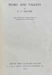 - SMYTHE (Frank Sydney) : Peaks and valleys. Londres, A. & C. Black, 1938. In-4°, reliure toile de l'éditeur. Édition originale, illustrée de 75 photographies, dont 13 sur les Alpes et les autres sur l'Himalaya.