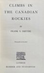 - SMYTHE (Frank Sydney) : Climbs in the Canadian Rockies. Londres, Hodder & Stoughton, 1950. In-8°, reliure toile de l'éditeur, titre doré au dos. Édition originale illustrée de 34 photographies hors-texte dont 2 en couleurs et de cartes et croquis dans le texte. Cet ouvrage relate des ascensions dans la "Lloyd George Range".