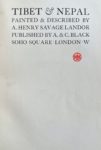 - LANDOR (Henry Savage) : Tibet and Nepal. Londres, A. & C. Black, 1905. In-8°, reliure toile décorée de l'éditeur. Édition originale, illustrée d'une carte et de 75 photographies. Récit du voyage effectué par l'auteur en 1899 au Népal, au cours duquel il prétendit avoir gravi le Mont Api (sommet isolé de 7132 m situé à la bordure orientale du Gharwal). Ce difficile sommet n'a en réalité pu être vaincu qu'en 1954 par une expédition italienne conduite par P. Ghiglione, au cours de laquelle l'alpiniste Barenghi trouva la mort. Ex-libris manuscrit sur la page de garde.