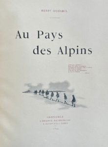 Grenoble, Falque et Perrin (Librairie Dauphinoise), 1899. In-4°, broché, couverture rempliée illustrée. Édition originale, illustrée de nombreuses photographies reproduites en phototypie, de dessins d'Émile Guigues et de deux planches dépliantes hors-texte. L'ouvrage comporte un signet-index des gravures, tiré à part. Histoire des chasseurs alpins dans le Briançonnais. Bibliographie.