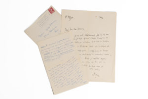 Jean COCTEAU. 1889-1963. Ecrivain poète, artiste. 2 L.A.S. à Jean Dauven. Milly, 15-23 décembre 1955. 1 pp. in-4, et 1 pp. in-8 accompagnée de son enveloppe. A propos de l'ouvrage de Dauven, « Jean Cocteau chez les Sirènes », qui parodie le...