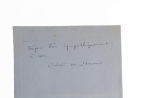 Sidonie-Gabrielle Colette dite COLETTE. 1873-1954. Femme de lettres. L.A.S. « Colette de Jouvenel ». Paris, s.d. (circa 1920). 1 pp. ½ in-4 sur papier en-tête de son adresse 69 Boulevard Suchet. En trois mots je m'excuse : travail, grippe,...