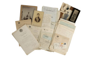 du prince, pour diverses fournitures, livres, mobiliers, argenteries, cristallerie, destinés à l'ameublement des palais à Vienne et Paris. Sont joint, divers devis pour divers travaux (tapisseries, boiseries, salle du trône, etc.). Quittance signée du prince Grégoire, joint plusieurs quittances de la comtesse Sturdza, et Aglaé Ghika. Facture des maisons Horowitz, Kuhnle, Stephanowitz, Budzinsky, Hofmann, Frédéric Ortgies, Hennig, etc. - Papiers et correspondance de la famille GHIKA : adresse à Georges Ghika ; Pierre Ghika (1877-1942), ensemble de documents, passeport et brevet militaires - Alexandre Ghika (1914-2001), Nathalia Ghika, Dimitrie Ghika (1875-1967). - Portrait photos d'Alexandre de SERBIE (1889-1903) en grand uniforme ; 3 portraits photo. de Pierre Ghika ; petit ensemble de photo. de Joana Ghika Cantacuzène. Reproductions de portrait du prince Grigore IV Ghica.