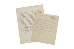 Lettre de condoléances dans laquelle le duc déplore la mort de Christophe-Philippe Oberkampf (1738-1815), fondateur des manufactures de Jouy. « (…) J'avais appris par les gazettes cette perte (irremplaçable) pour sa famille, pour ses amis et pour l'industrie française. » Il envisageait de recevoir son fils Emile quand il apprit « cette calamité ». « Permettez-mois de vous assurer de nouveau parmi les nombreux admirateurs de Mr Oberkampf, personne ne portait plus de respect que moy à ses vertus ». Il loue en lui l'homme de sciences, etc. JOINT une lettre de Louis-Alexandre duc de LA ROCHEFOUCAULD-d'ENVILLE (1743-1792), défenseur de la cause américaine, ami de Benjamin Franklin. L.A.S. à M. Massieu, négociant. Paris, 23 mars 1780. 1 p. bi-feuillet in-8, adresse au verso, cachet de cire rouge. Remerciement pour les compliments adressés à l'occasion de son mariage (avec Alexandrine de Rohan-Chabot) ; l'emplacement de son régiment ne lui a pas permis de passer à Caen.