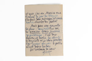 uniquement pour te dire avant le courrier que je vais bien sans rivaliser avec le robuste Turc, que je n'ai de mauvaises nouvelles de personne, que la seconde édition d'Aphrodite est presque épuisée, ce qui nous oblige à en faire tirer deux autres, et que j'ai vu Maria rue Vineuse (…). Mais pas une nouvelle de plus : aujourd'hui est la première vraie journée de printemps ; il est dix heures et demie ; je saute à bicyclette et je vais prendre l'air jusqu'au soir à petite allure dans les bois (…)." En p.s. il le questionne sur son dernier "mystérieux" télégramme.