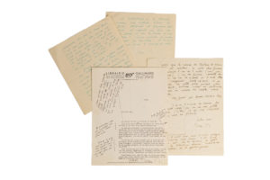 Roger NIMIER. 1925-1962. Ecrivain. 2 L.A.S. et L.T.S. avec 4 notes aut. Mercredi (1955), s.d. 2 pp. ½ petit in-4, encre verte, trombone ; 2 pp. in-4 sur papier en-tête « le nouveau fémina » ; 1 p. in-4, en-tête de la Librairie Nrf - Gallimard...