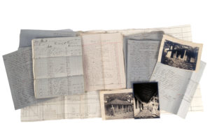 Il concerne les domaines de la Confianza et de Santa Fé, qui seront exploités en coton, café et tabac puis principalement avec des plantations de cannes à sucre. Première partie constituée des titres de propriété des domaines acquis entre 1834 et 1862, des papiers de successions dans les années 1874-1885, puis 1910, avec le descriptif des différentes cavaleries sucrières, les entrepôts avec tonnellerie, machines à vapeur, etc. JOINT 9 cartes et plans, relevés cadastraux des domaines et bâtiment de l'exploitation. Une seconde partie constituée des documents de succession, des reprises de propriété, jusqu'aux propositions de vente auprès de la société cubaine « Guantanamo sugar Company » et américaine « Sullivan & Cromwell » dans les années 1930. Plusieurs inventaires (1862, 1864, 1869, 1873, 1910) présentent la totalité des biens mobiliers et immobiliers, avec le cas particulier de l'emploi d'esclaves qualifiés de « nègres, négresses et négrillons », Cuba ayant été le dernier pays à abolir l'esclavage en 1886. PARMI LES DOCUMENTS SUR LA MAIN D'OEUVRE, UNE LISTE DES ESCLAVES EMPLOYES SUR LE DOMAINE, UNE AUTORISATION DES AUTORITES POUR LEURS DEPLACEMENTS, un état des lieux avec photo des anciennes habitations d'esclaves, dans les années 1920. Sont joints plusieurs dossiers sur les baux à ferme et l'encaissement des loyers, correspondance, papiers en liens avec l'importante famille de planteur Durruthy et les autorités locales pour l'administration et la reconnaissance des titres.