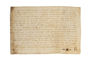 [AUVERGNE - REGNE de CHARLES IV le Bel]. Charte. 30 mars 1323. Vélin oblong (28 x 17,5 cm). Charte en patois d'Auvergne, par laquelle Pons Fauchier [Pons Faulchyer] abbé de la Garde Dieu [abbaye cistercienneà Miribel - Tarn-et-Garonne], fait bail...
