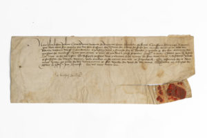 Jean DUNOIS dit le Bâtard d'Orléans. 1403-1468. Comte de Dunois et de Longueville, fils de Louis d'Orléans et de Mariette d'Enghien, Compagnon de Jeanne d'Arc. P.S. « le bast(ard) d'Orléans ». Blois, 27 août 1438. Vélin oblong (32,5 x 12 cm),...