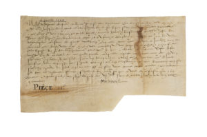 l'Hospital, conseiller du Roi en la Cour du Parlement de Paris, comme exécuteur de l'arrêt de la cour du 14 août 1536, élu premier Huissier royal, pour contraindre Msr Jean de Laroche à payer à François de Laplanche messager juré de la ville d'Angoulême, la somme de 4 livres parisis, à quoi il a été taxé par ladite Cour pour avoir porté de Paris à Angoulême, dans un sac clos et cacheté, l'enquête en parcchemin faite par ledit Mr de l'Hospital à la requête dud. Mre Jean de Laroche, contre Catherine de Clermont, pour le faire signer à Mre Jean de Cordieu adjoint dud. Mr de l'Hospital résidant à Angoulême, et l'avoir reporté audit Mr de l'Hospital à Paris. Quittance au dos de la pièce du 18 juillet 1540. Pièce provenant du procès et bornages des seigneuries de Mareuil, Laroche-Beaucourt, Villebois et Lavaure.
