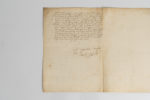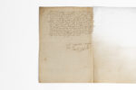 de Lorraine. Metz, 3 juin 1558. 1 p. ½ bifeuillet in-folio, adresse au verso, cachet armorié sous papier. Sur son projet d'assiéger Thionville [qui sera prise le 28 juin]. Le duc indique à son frère qu'il a envoyé à ce sujet « ung petit discours au Roy de tout ce qui passa yci au voiaige que je priz au camp et en la résolution que surprise d'assiéger Thionville, m'ayant semblé que je devays fonder l'occasion de ceste entreprinse » Il pensait devoir attendre pour cette entreprise l'arrivée des troupes d'Allemagne, mais il est décidé à la tenter sans plus attendre « pour faire vivre ce que j'avays de forces aux despens de l'ennemy et essayer plus tost de faire quelque chose que de laisser les forces de Sa Majesté inutilles si longuement (…). » Il annonce ensuite que les gens de Georges Aubret viennent d'arriver avec l'argent destiné au paiement de « mille pistoliers (…) Je me trouvays court sans cela. Je leur feray bailler escorte pour les mener jusques à Valdenrange où se faict la monstre desdits mil pistoliers (…). » Dans un post-scriptum, il prie son frère de faire convoyer les gentilshommes de l'arrière ban qui doivent prendre le chemin de Compiègne le 1er juillet, et lui donne à ce sujet des instructions particulières. Il annonce ensuite l'arrivée de Blaise de Monluc : « Le Sr de Montluc m'est arrivé ainsi que je voulays signer ceste lettre qui m'a esté plaisir. Je feray demain entendre aux cappitaines des bendes françoises qu'ilz ayent à luy obéyr suivant l'intencion du Roy et ce qui luy a pleu m'en escrire (…). » Ancienne collection Morssen