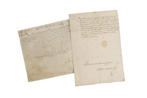 [MONTMORENCY] - 2 pièces - Guillaume de MONTMORENCY. 1554-1593. Fils cadet d'Anne de Montmorency. P.S. Paris, 3 octobre 1568. 1 p. bifeuillet in-folio, cachet sous papier aux armes. Pièce en qualité de Seigneur de Thoré, capitaine des cinquante...