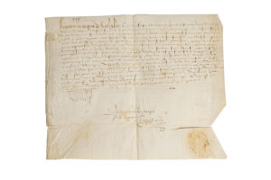 Reconnaissance et acceptation d'un acte « de foy et hommage lige à cause de nostre chastellenie de Beaugency », donné à Pierre Derval, fils de feu noble homme Jehan Derval et Françoise de Patay jadis son épouse, à cause et pour raison du site appelé la Grand-Maison, scitué et assit en la paroisse dudit Ouzoures le marché [Oussouer-le-Marché]. Pièce signée « François » comme comte de Neufchâtel et de Montgommery, vidâme de Chastelaillon, vicomte de Mellung, seigneur de Beaugency, etc. Ancienne collection Charavay 6669
