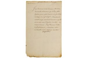 Nicolas-Prosper Bauyn d'ANGERVILLIERS. 1675-1740. Ministre de la Guerre. L.S. au maréchal d'Estrée. A Fontainebleau, 23 may 1730. 1 p. in-folio. Il adresse au maréchal la nouvelle ordonnance du Roi « pour régler le service et les fonctions des...