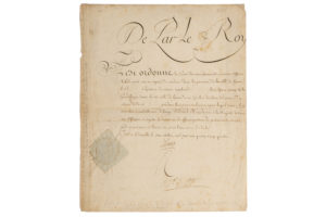[LETTRE de CACHET]. LOUIS XVI (Secrétaire) & Charles-Eugène de La Croix marquis de CASTRIES. 1727-1801. Maréchal de France, ministre de la Marine de Louis XVI. P.S. A Versailles, 6 octobre 1784. 1 p. in-folio, cachet aux armes royales sous papier...
