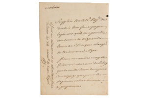 Philippe D'ORLEANS dit LE REGENT. 1674-1723. Régent de France à la minorité de Louis XV. Apostille aut. signée. (circa avril-juillet 1717). 1 p. bifeuillet in-4 ; cachet de collection. Document relatif à l'accueil du Tsar Pierre Ier au moment de...