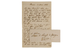 in-8, joint son enveloppe avec cachet de cire rouge à ses armes (estompées). Lettre affectueuse de la Princesse, à l'aînée des filles naturelles du duc de Berry, qu'elle avait élevée au Palais, après l'assassinat du duc. Ma chère Charlotte, votre bon mari vous portera ce mot d'amitié et vous dira combien je désire vous revoir. Nous avons été bien heureux de le posséder quelque temps et que nous gardons encore Charles. Adinolfe me prie de vous dire qu'il est bien heureux d'être avec lui. Le Pce vous dira ce que j'ai fait pour l'affaire Foresta &c &c. (…) Je ne vous parle pas d'ici ny du Duc de Francesca et de Adinolfe. J'ai de bonnes nouvelles de Clémentine et Isabelle. J'espère que vous en avez aussi de bonnes de Marguerite et ses enfans (…).