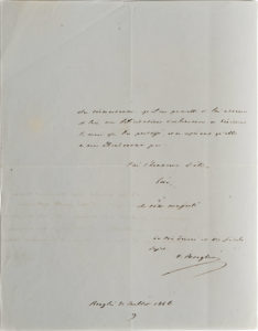 ministre regrette de ne pas être à ces côtés. « (…) Si je ne suis pas en ce moment aux Tuileries, (le Roi) sait que je suis uniquement retenu par le bien de son service, et la nécessité pressante des circonstances, qu'il me permette de lui adresser de loin mes félicitations douloureuses, et bénisse la main qui l'a protégé (…). »