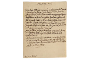 bi-feuillet in-8. Importante lettre relative à la guerre de Vendée qui semble inquiéter les émigrés à cause du manque d'unité de vues et de forces. Le maréchal remercie son correspondant de lui avoir communiqué des renseignements secrets sur le mouvement de l'Armée royale en Bretagne et sur les craintes que vous avez des différentes vues qui peuvent diriger une partie des opérations qui se préparent (…). Il est impossible de s'opposer et lorsqu'on n'a pas la force de s'opposer, il faut observer le plus grand silence (…). Je ne doute pas que Mgr le Cte d'Artois ne vous écrive dans le même esprit. J'espère que le système politique qui fait reconnaitre une monarchie sans rois, ne subsistera pas toujours, et que les conséquences naturelles des choses reprendront leurs droits (…).