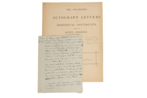anglais par le collectionneur Morrison. Emouvant document écrit peu de jour après l'arrivée de Cléry au Temple avec la famille royale (entre le 22 et le 28 septembre 1792), adressé au député Drouet, celui-là même qui arrêta Louis XVI à Varenne. "Le Citoyen Cléry, valet de Chambre du ci-devant Prince Royal, actuellement de service à la Tour auprès de Louis Capet père et fils. - Réclame dans une comode près de la porte et la cheminée du salon de la Reine aux Thilleries dans l'antichambre, dans le tiroir d'en haut, plusieurs petits registres de dépense et autre papier canif. - Dans celui d'en bas deux épée un dessus d'habit de soie blanc. - dans ledit antichambre de l'autre côté de la cheminée, il y a une porte qui conduit dans un petit coridor, en entrant près la porte, dans une armoire plaqué dans le mur, il y a deux habit un de drap rayé un de soie verdatre souliers &c. - Demander à la Commission des Thuileries, le citoyen Rousel à qui le citoyen Cléry en a parlé. " Ancienne collection Morrison (acquis à la vente Charavay, le 15 juin 1878, n°32).