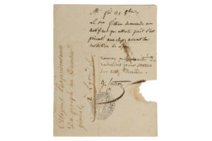 Couthon étant représentant du Peuple près l'Armée des Alpes et organisant le rétablissement du régime républicain à Lyon. "Le citoyen Fillion demande un certificat qui atteste qu'il s'est présenté aux représentants avant la reddition de Lyon." Couthon répond en apostille : "Ranvoy au Comité des recherches pour statuer sur cette demande."