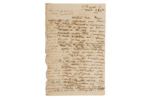 mon intention, mon cher ami, est d'aller passer la journée seulement à A* et de revenir ici le soir. Mais (…) le tems est si affreux que je ne sais pas si je pourrai faire ce petit voyage quoique je doive le faire en voiture (…). Il repartira ensuite dans quelques jours pour Paris ; Je ne te demanderai pas de chevaux à Libourne parce que je vais ateler avec ma voiture (…). Il espère que les passages de rivières ne l'empêchera pas d'arriver à temps. En arrivant hier, il a trouvé Victoire malade et sa fille avec la fièvre. Il espère le retrouver bientôt avec sa belle-fille et ses enfants, etc. Ancienne Collection Charavay