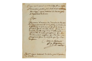 Antoine FOUQUIER-TINVILLE. 1747-1794. L'accusateur public près le Tribunal révolutionnaire. L.S. à l'agent national district près le département de Paris. Paris, 25 Prairial an II. 1 p. in-4. Lettre historique écrite la veille de la mise en...