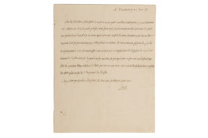 signature de la Paix de Campo Formio, évoquant le sort de l'Armée de Condé et envisageant d'accepter la proposition faite par le Tsar Paul 1er d'établir son exil en Courlande. Il répond au vieux maréchal qui demandait l'autorisation de se mettre au service de la Russie. (…) Je ne puis savoir encore quelle influence la paix qui semble devoir bientôt se conclure, peut avoir sur le sort de mon Armée et sur les autres manières sont je pourrais employez votre zèle et vos talens. Je vous avoue que jusque là, j'ai de la répugnance à vous voir embrasser une carrière qui m'empêcherait de disposer de vous d'un moment à l'autre (…). La paix conclue, il verrait cependant son emploi utile au service de l'Etat ; Je vous verrais avec une véritable satisfaction profiter des offres généreuses de l'Empereur de Russie (…). Joint un billet autographe signé du comte de Pons, premier Aide de camp du maréchal de Viomesnil, attestant que la lettre de Louis XVIII est adressée au Maréchal de Viomesnil, en en précisant le contexte : Paix de Campo-Formio, invitation du Tsar Paul 1er à rentrer à son service, etc.