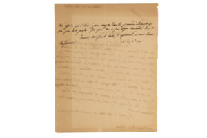 militaires de son Corps d'armée. « (…) Je viens vous rappeler la prière instante que je cous ai faite alors de le mettre sous les yeux de S.M. ; et comme je sais que vous avez demandé aux conseils d'administration des régimens des renseignements qui ne pouvaient être promptement fournis, retarderont l'expédition de ce travail (…). » Il demande que soient séparées les officiers d'état-major de ceux de la division, attachant beaucoup de prix pour ses demandes, récompensant ceux qui ont prouvé leur dévouement au roi. Il joint encore trois officiers qui n'étaient pas compris dans le premier état. Ancienne collection Saffroy