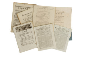 à Paris le 19 novembre 1790. A Paris, de l'Imprimerie Nationale, 1790 (6 pp. in-4, signatures d'administrés) ; - Loi relative à l'or et l'argent, et à l'argenterie qui se trouveront dans les maisons ci-devant royales et dans celles des émigrés, du 3 septembre 1792. S.l., impr. Causse, 1792 (6 pp. in -4) ; - Décret de la Convention nationale, relative à la vente du Mobilier des biens des Emigrés. A Paris, de l'Imprimerie Nat., 1793 8 pp. in-4) ; - Décret de la Convention nationale qui rapporte tous les décrets relatifs aux indemnités à accorder aux princes étrangers. Paris, Mallard, 1792 (2 pp. in -4) ; - Décret de la Convention nationale, du 17 septembre 1793 qui déclare les loix relatives aux émigrés, applicables aux déportés. Tours, Vauquer (1793), (3 pp. in-4) ; - Rapport fait par J.E. Richard, sur la police intérieure de la République. A Paris, de l'Impr. Nat., an V (1796), (14 pp. in-12).