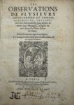 BELON (Pierre) — Les Observations de plusieurs singularitez et choses memorables, trouvées en Grece, Asie, Judée, Égypte, Arabie, et autres pays estranges.