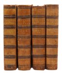 Élégant exemplaire agréablement relié à l'époque. Les tranches sont ornées d'un charmant décor original à l'encre brune. Les volumes présentent une double tomaison au dos : Voyages & Travels vol. 74 à 77, et Clarke vol. 1 à 4.