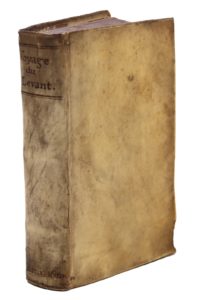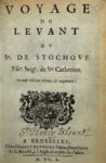 Bruxelles, H. A. Velpius, 1650. Petit in-8, vélin ivoire, dos lisse, tranches jaspées (Reliure de l'époque).Seconde édition, revue et augmentée, de cette intéressante relation de voyage dans l'empire ottoman composée par Vincent Stochove (1605-1679), seigneur de Sainte-Catherine, né et mort à Bruges, dont il fut plusieurs fois bourgmestre. La première édition avait été publiée à Bruxelles en 1643 sous le titre de Voyage du sieur de Stochove faict ès années 1630, 1631, 1632, 1633.