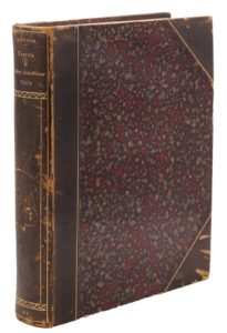 Charnières usées, mouillures, rousseurs et réparations de papier.