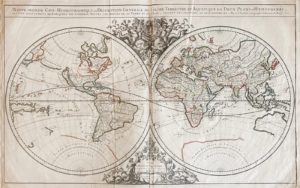 Composition (la numérotation se réfère à la collation donnée par Mireille Pastoureau) : [1] Mappe-monde géo-hydrographique ou description générale du globe terrestre et aquatique en deux plans-hémisphères. 1674. Trou avec petit manque dans le cartouche ornemental. – [3] L’Asie distinguée en ses principales parties. 1674. – [8] La Scandinavie et les environs où sont les royaumes de Suède, de Danemarck et de Norvège. 1675. – [15] Les Monts Pyrénées, où sont remarqués les passages de France en Espagne. 1675. – [14] L’Alsace divisée en ses principales parties. 1674. – [17] L’Empire d’Allemagne. 1674. – [18] Les Pays-Bas divisés en dix sept provinces… 1672. Petits grattages sur le cartouche de titre. – [19] Les Provinces des Pays Bas catholiques. 1672. Taches d’encre sur le cartouche de titre. – [20] Provinces Unies des Pays-Bas. 1673. Fines déchirures dans le pli médian. – [21] Partie septentrionale du Comté de Hollande. 1674. Assemblé à : Partie méridionale du Comté de Hollande. 1674. Armoiries masquées dans le cartouche inférieur. – [22] Le Cours de la Rivière du Rhein depuis sa source jusques à son embouchure. 1672. – [23] Le Cercle de Souabe. 1675. – [24] Le Cercle eslectoral du Rhein (sic). 1675. – [26] Le Cercle de Westphalie. 1675. – [27] Le Cercle de Franconie. 1674. – [28] Le Cercle de Bavière. 1675. – [32] Le Cercle de la Haute Saxe. 1676. – [33] Le Marquisat et Eslectorat de Brandebourg. 1676. – [34] Le Duché de Pomeranie. 1676. – [36] Les Estats de la Couronne de Pologne. 1675. – [38] La Catalogne sous le nom de laquelle sont compris la Principauté de Catalogne et les Comtés de Roussillon et de Cerdagne. 1674. – [42] Le Royaume de Hongrie et les Estats qui ont esté sujets et dependans de sa Couronne. 1673. – [43] Les Estats de l’Empire du Grand Seigneur des Turcs en Europe, en Asie et en Afrique. 1675. En cartons, carte des royaumes d’Alger et de Fez.