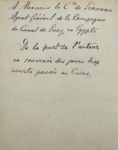 Envoi autographe de l'auteur au comte de Lévronne, agent-général de la Compagnie du Canal de Suez : en souvenir des jours trop courts passés au Caire.