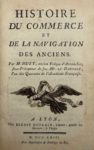 Lyon, Benoît Duplain, 1763. In-8, veau porphyre, roulette dorée, dos lisse orné à la grotesque, pièce de titre rouge, dentelle intérieure, tranches dorées (Reliure de l'époque).Nouvelle édition de ce mémoire consacré à la navigation et aux routes commerciales méditerranéennes durant l'antiquité, mais aussi au commerce maritime des Arabes, des Indiens, des Chinois, des Éthiopiens, etc. Il s'agit d'une œuvre de jeunesse de l'abbé Huet (1630-1721), évêque d'Avranches, composée à la demande de Colbert lorsqu'il était surintendant général du commerce et de la navigation, et hâtivement éditée en 1716.