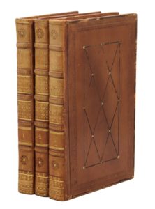 Paris, A. Nepveu, 1820. 3 volumes in-8, veau fauve, riche encadrement de roulettes à froid et d'un filet noir, rectangle central orné de filets noirs droits et obliques entrecroisés en losanges, dos orné de motifs dorés et à froid, chiffre S.G.Z. doré en queue, filet torsadé sur les coupes, tranches jaunes (Reliure de l'époque).Seconde édition des fameuses relations de Castellan, réunissant deux ouvrages distincts : les Lettres sur la Morée et les îles de Cérigo, Hydra et Zante publiées en 1808 et les Lettres sur la Grèce, l'Hellespont et Constantinople données en 1811.