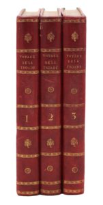Paris, Dentu, 1802. 3 volumes in-8 et un atlas in-folio, demi-maroquin rouge à long grain avec coins de vélin vert, dos lisse orné, tranches jonquille (Reliure de l'époque).Troisième édition revue et augmentée, la plus complète de cette célèbre description de la Troade, au nord-ouest de la péninsule anatolienne, où se trouvait l'antique cité de Troie.