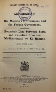 [ACCORD PAULET-NEWCOMBE] — Agreement between His Majesty's Government and the French Government respecting the boundary line between Syria and Palestine from the Mediterranean to El Hammé. Presented to the Parliament by command of His Majesty.