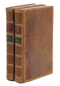 Paris, Desenne, Volland, 1787. 2 volumes in-8, basane granitée, double filet doré, dos lisse orné, tranches mouchetées (Reliure de l'époque).Seconde édition revue et corrigée parue la même année que l'originale, avec les mêmes planches dépliantes : deux cartes de l'Égypte et de la Syrie ottomane (Syrie, Liban, Palestine), un plan et une vue du temple de Baalbek, une vue des ruines de Palmyre.