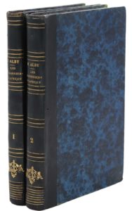 Paris, Desessart, 1847. 2 volumes in-12, demi-veau bleu glacé, dos lisses ornés de filets et d'un décor arabisant dorés, tranches mouchetées (Reliure de l'époque).Édition originale de cet ouvrage proposant, sous forme dialoguée, le récit de captivité d'un certain nombre de prisonniers, militaires ou civils, dont plusieurs femmes, dans le camp d'Abd-el-Kader. Il a été réédité en 1849.