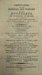 ANTES (John) — Observations on the manners and customs of the Egyptians, the overflowing of the Nile and its effects ; with remarks on the plague, and other subjects : written during a residence of twelve years in Cairo and its vicinity.