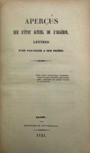 [BLONDEL (Léon)] — Aperçus sur l'état actuel de l'Algérie. Lettres d'un voyageur à son frère.