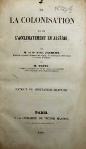 JACQUOT (Félix) — De la Colonisation et de l'acclimatement en Algérie. Extrait du Spectateur militaire.