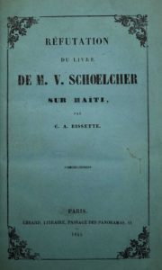 BISSETTE (Cyrille-Charles-Auguste) — Réfutation du livre de M. V. Schoelcher sur Haïti. Paris, Ébrard [Imprimerie de Blondeau],