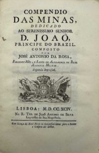 DA ROSA (José Antonio) — Compendio das minas, dedicado ao Serenissimo Senhor D. Joao, Principe do Brazil. Segunda impressao.
