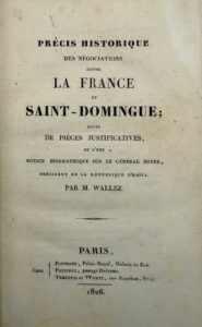 WALLEZ (Jean-Baptiste) — Précis historique des négociations entre la France et Saint-Domingue. Paris, Ponthieu e.a.,