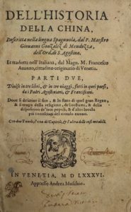 L'Historia de las cosas más notables, ritos y costumbres, del gran reyno de la China de González de Mendoza (1545-1618) avait été publiée à Rome un an plus tôt en espagnol. La traduction italienne est l'œuvre de Francesco Avanzo.