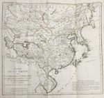 Paris, Moutard, 1787. 2 volumes in-8, veau marbré, triple filet doré, dos orné, dentelle intérieure, tranches dorées (Reliure de l'époque).Seconde édition refondue au format in-8. Elle est illustrée d'une grande carte dépliante de la Chine par Brion de La Tour, aux liserés coloriés, et de 15 planches dépliantes représentant étendards, ustensiles, chars de guerre, etc.